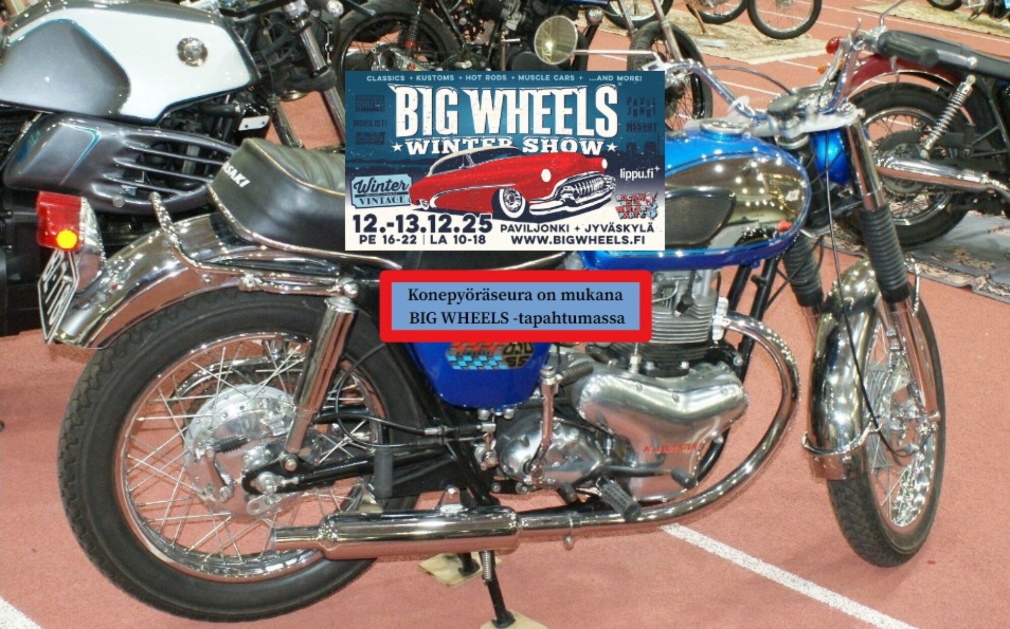 Moni pyörä on myös ajossa… Entisöinti- ja huoltotoiminnan tekevät mahdolliseksi Jyväskylän Myllyjärvellä käytössä olevat kokoontumis- ja verstastilat monipuolisine työkaluineen. Erityisesti olemme pyrkineet hankkimaan sellaista työvälineistöä, jonka hankinta olisi kohtuuttoman kallista yksityiskäyttöön. Tällaisia ovat esimerkiksi hiekkapuhalluslaitteet, prässi sekä hitsauslaitteistot.